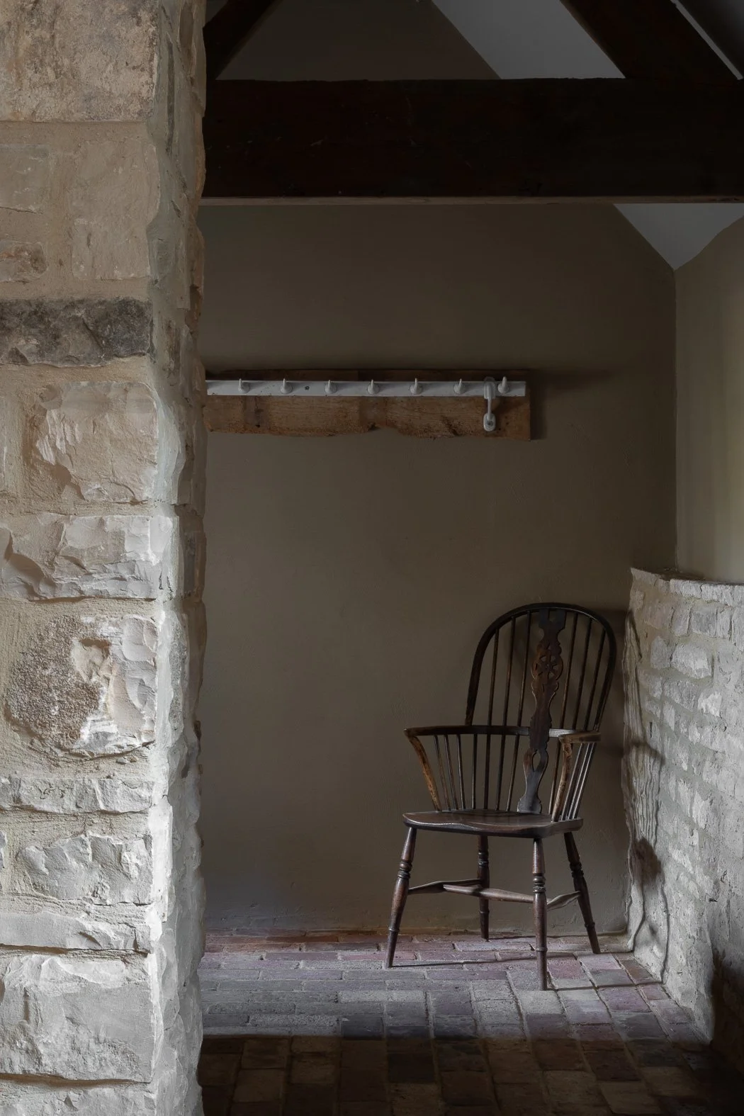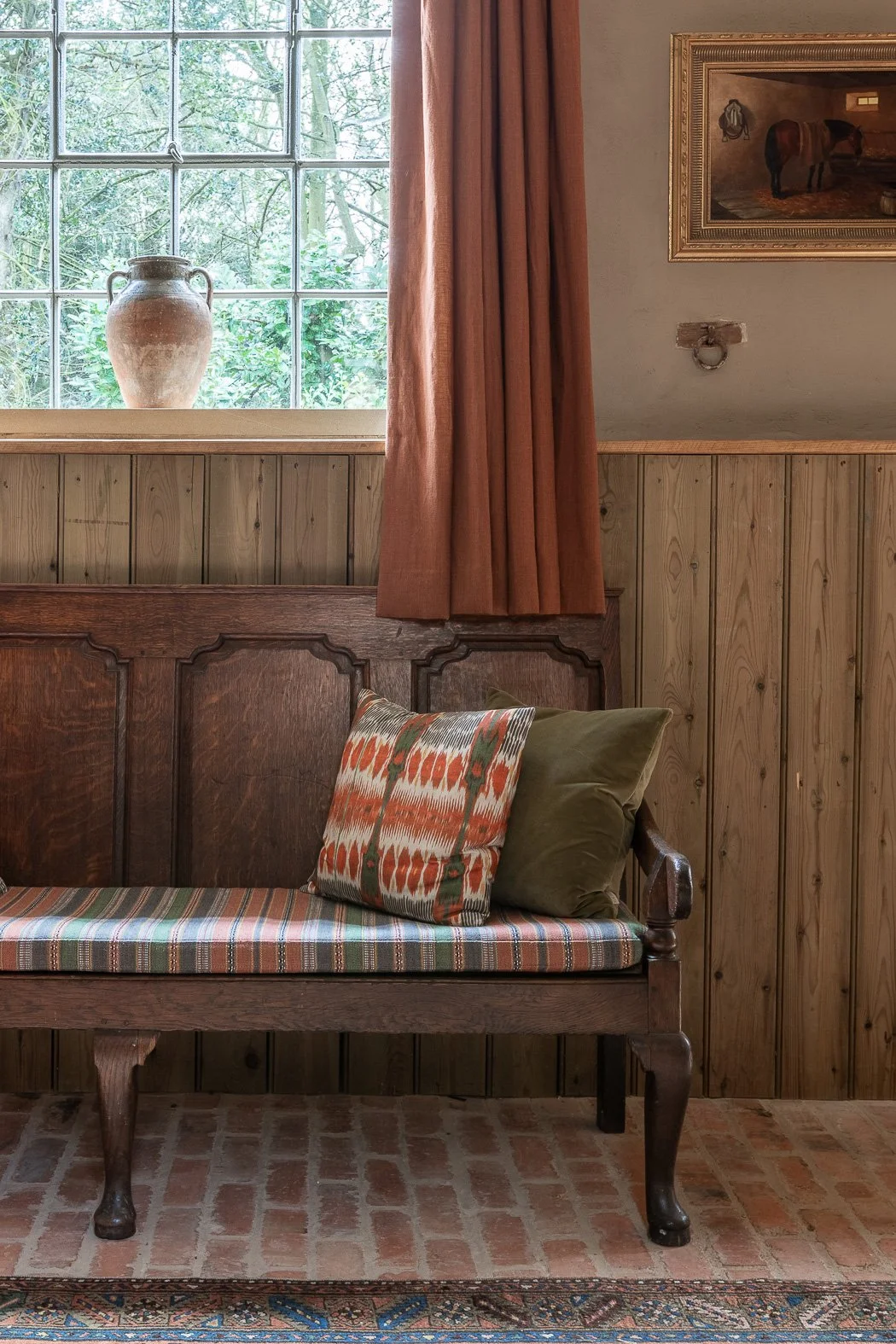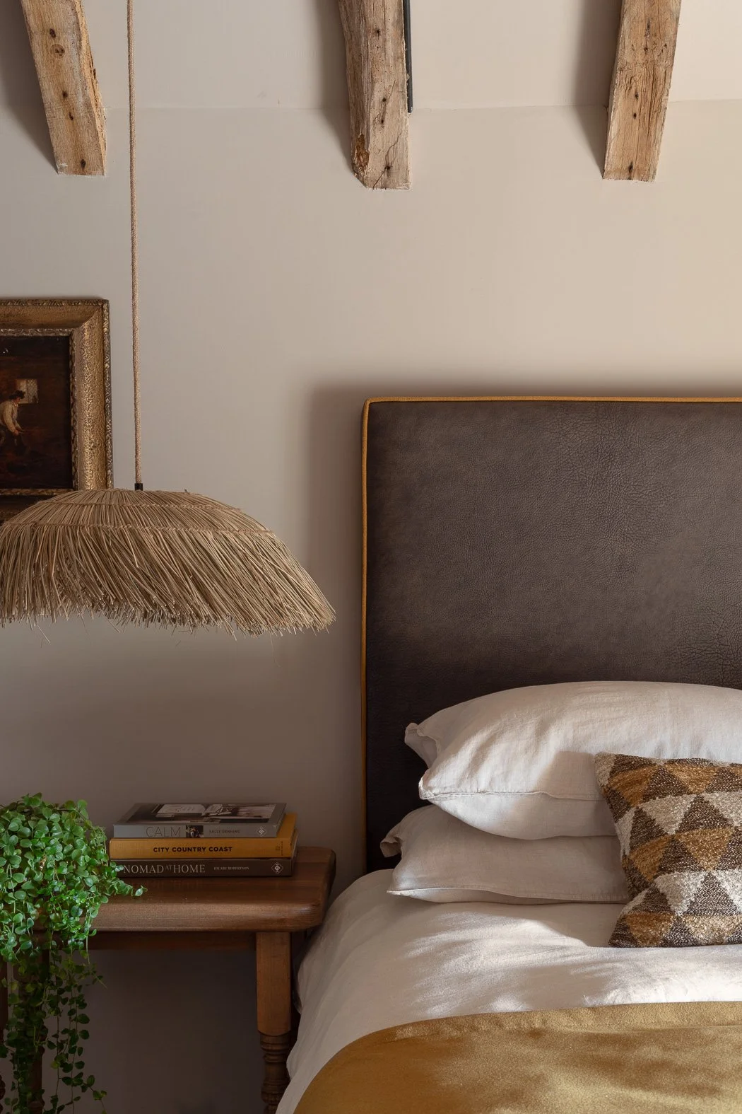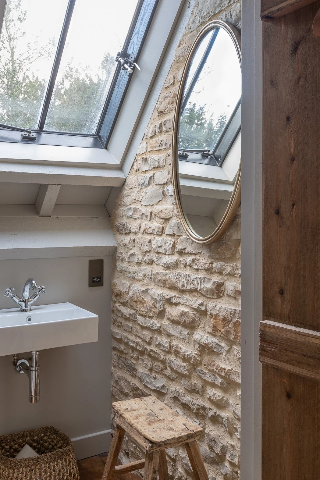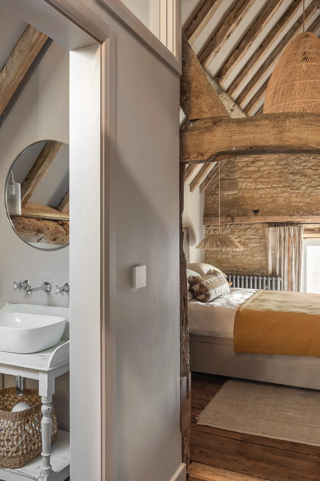 As this building was listed, so certain characteristics had to be retained in line with conservation guidelines. This threw up some challenges, but also allowed us to have a bit of fun. Structurally, the drainage lines were retained in the floor with the old bricks laid to the original lines, and the original stalls were reinstated - there’s even an old stable door with “Humphrey”, a horse’s name plate still attached. And where possible we made subtle references to the building’s history through the interiors, for example the straw lamp shades in the main bedroom are a nod to the space’s previous purpose as a hayloft .